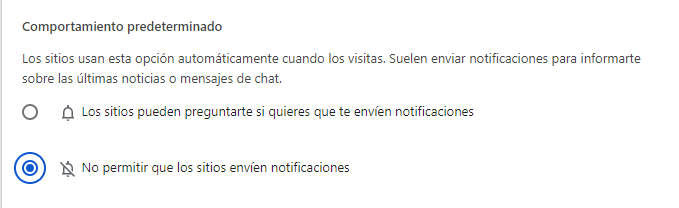 Para ir directamente a la sección Notificaciones, puede ir a la dirección interna chrome://settings/content/notifications.